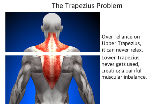 Frequently, people rely too much on their upper-trapezius (tight & contracted) and an under-developer lower trapezius muscle (loose & elongated).